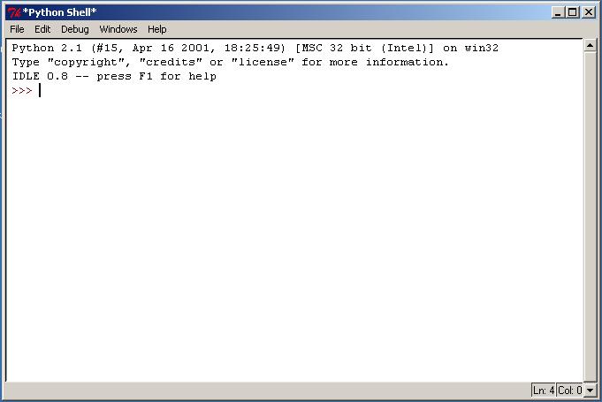 Предположим, что Питон у Вас уже установлен, если нет - то сходите на http://python.org и скачайте свежую версию интерпретатора. Когда писалась эта статья, то свежей была версия 2.1. Первой вещью, которую вы сделаете, будет запуск интегрированной среды Питона IDLE! Мы сделаем это, запустив соответствующую ссылку из меню Start в только что созданной программной группе Питона.