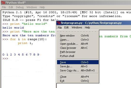 Решение просто: мы можем сохранять непосредственно экран, содержащий как сам код, так и результат его выполнения. Но мы желаем набрать документ, сохранить его в файле, а затем заставить интерпретатор выполнить всё, что мы набрали, дабы сэкономить наше время.