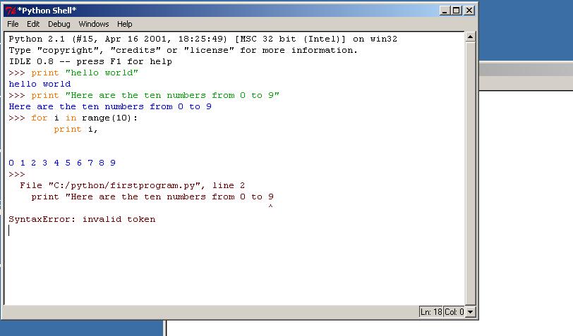 It might be nice to have a "visual" guide to reduce any initial anxieties. That's what this page is for. The plan is to go through a small session with IDLE: the Integrated Development Environment. IDLE is designed to provide a simple way of exploring the language. During this session, I'll make a few fumbling mistakes, just to show what to expect when things don't go exactly hunky-dory.