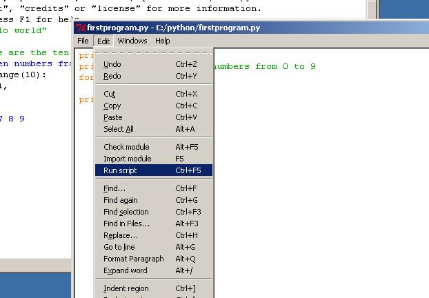 то увидим пункт Run Script, это то, что нам нужно. Мы хотим, чтобы файл был интерпретирован Питоном, а результат его выполнения был отображён в интерактивном окне.
